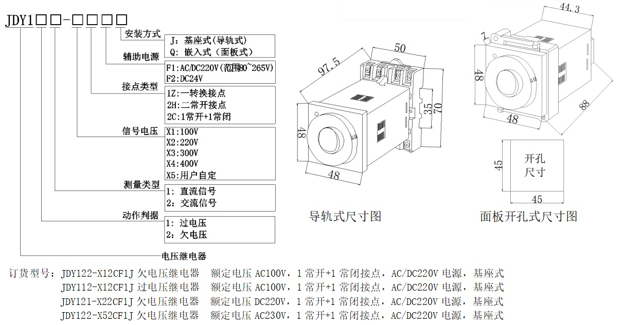 參數(shù):AC,DC;過(guò)壓,欠壓保護(hù)繼電器